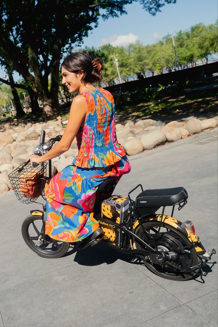 O universo vibrante da FARM Etc se juntou à leveza da bike elétrica da LEV pra te levar por aí com alegria, cor e liberdade.